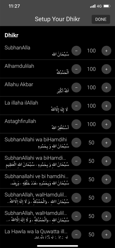 Construit avec Android Core & Swift, iDhikr est une application religieuse qui facilite le décompte des différents récitals avec des invites audio pour les apprenants. Des repères visuels intuitifs et une excellente fonctionnalité d'analyse permettent aux utilisateurs de suivre les récitals sur une période de temps spécifiée, d'apprendre et de s'engager dans d'autres activités religieuses.