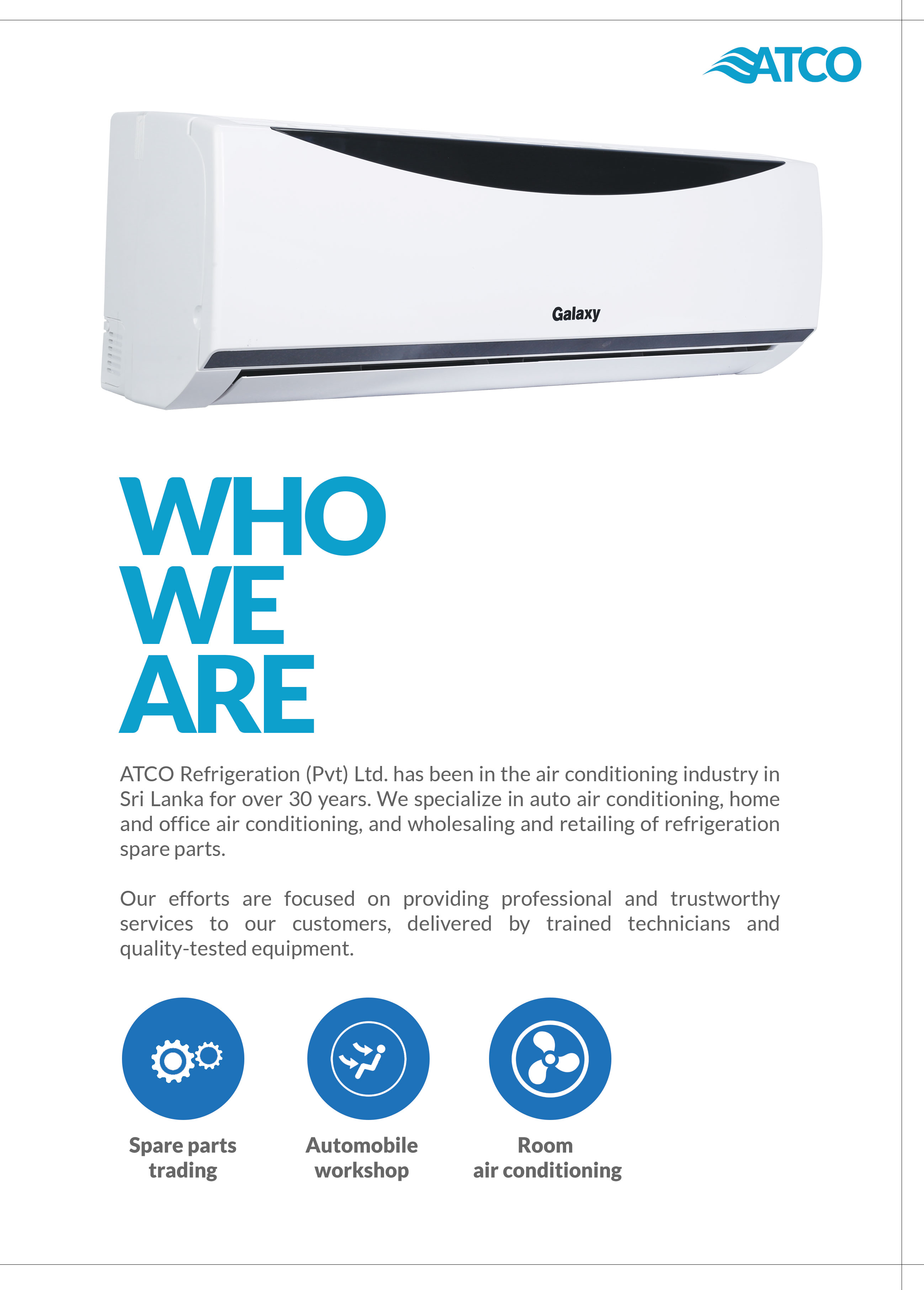 ATCO avait besoin d'une brochure qui pourrait servir de profil d'entreprise et promouvoir ses services et produits en soulignant le fait qu'ATCO est le seul importateur et distributeur du climatiseur GALAXY.